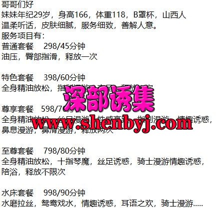 常规服务,主要颜值可以,身条可以,比老逼好多了,兄弟萌,老人应该都知道这个。 ...